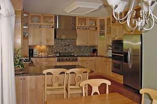 Design build project with extensive trim work and custom kitchen cabinets.